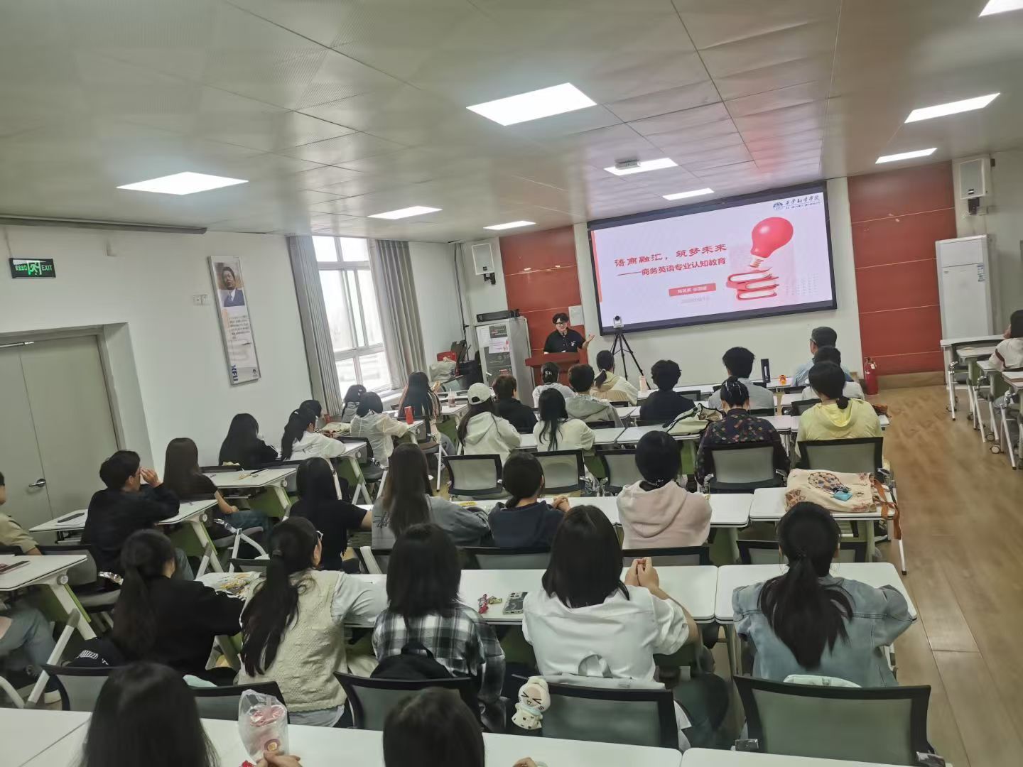 On the morning of September 12, the Department of Business English from the School of English Language and Culture hosted a professional orientation entitled “English Meets Business, Future Takes Flight” in Classroom 2407 on the West Campus. This aimed to help new students majoring in Business English to get a comprehensive understanding of the major that they will study, to establish clear learning objectives, and formulate reasonable plans for their future. The orientation featured presentations and discussions with department leadership, faculty members, distinguished alumni, and current student representatives, fostering meaningful communication about the prospects and opportunities of Business English.
